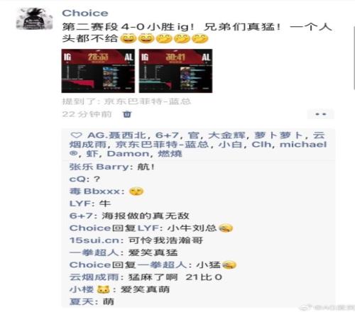 隨后愛笑讓朱開看自己微博發(fā)的朋友圈截圖,暗示這個兄弟是JDG老板藍蓮花。