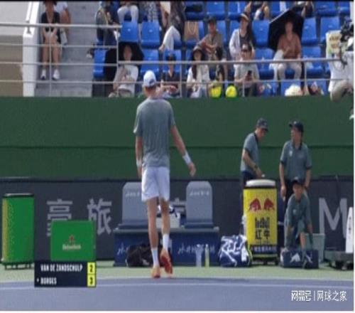 在第一盤(pán)第五局,荷蘭人的發(fā)球局遭到博爾熱斯破發(fā)后,讓一直承受極大壓力的范德尚舒普情緒徹底失控了,原以為他生氣將球扔出場(chǎng)外已經(jīng)很讓人無(wú)語(yǔ)了,沒(méi)想到最后他卻用力重重地球拍砸向地面,然后球拍直接飛向了觀眾席。當(dāng)這一幕出現(xiàn)在鏡頭中,且看到險(xiǎn)些砸中現(xiàn)場(chǎng)的球迷時(shí),讓直播間的所有人都大為震驚。
