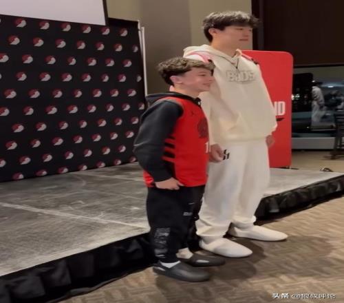 楊瀚森先是滿足了這個小球迷的合照,隨后這個男孩仿佛是在手機上拿出與楊瀚森的合照給楊瀚森看,兩人再次完成互動。