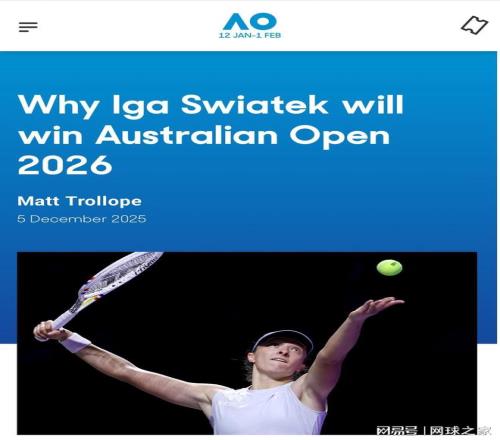 在2026賽季即將開啟之前,澳網(wǎng)官方專門發(fā)文表達(dá)了對斯瓦泰克明年澳網(wǎng)奪冠的看好。