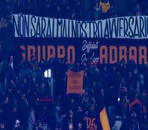 比賽中與賽后,情緒不斷升溫。羅馬球迷看臺打出橫幅:“這里永遠是你的家,歡迎回家,DDR?!绷硪粭l橫幅則寫道:“你永遠不會成為我們的敵人?!?/p>