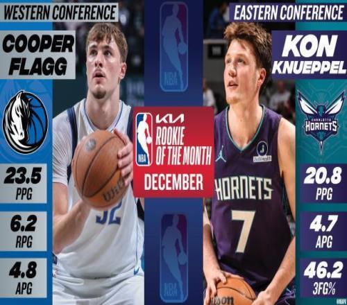 北京時(shí)間1月3日,NBA官方公布12月份各大月度最佳獎(jiǎng)項(xiàng)。