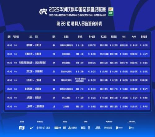 中超第28輪裁判安排