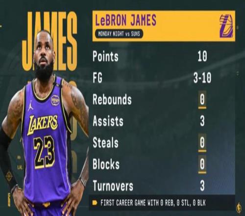 賽后,ESPN在復(fù)盤比賽時(shí),曬出一組數(shù)據(jù),詹姆斯在該場(chǎng)比賽中沒(méi)有籃板、搶斷和蓋帽,這是他23年職業(yè)生涯中首次出現(xiàn)該情況。