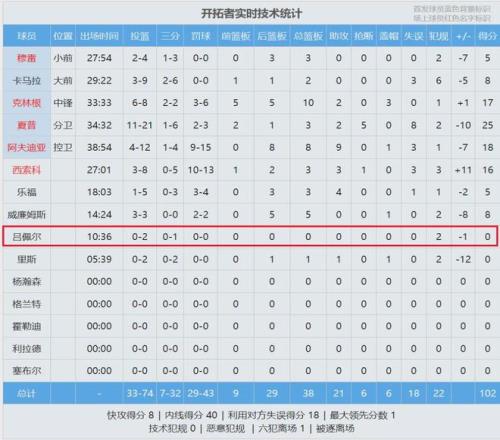 開拓者102-110輸給活塞。開拓者后衛(wèi)拉楊-呂佩爾替補(bǔ)出戰(zhàn)10分36秒,2投0中,得到0分0板0助0斷0帽2犯規(guī),正負(fù)值-1。過去4場比賽,呂佩爾一共打了27分鐘,合計(jì)3投0中,得分、籃板、助攻、搶斷和蓋帽,五項(xiàng)數(shù)據(jù)全是0!