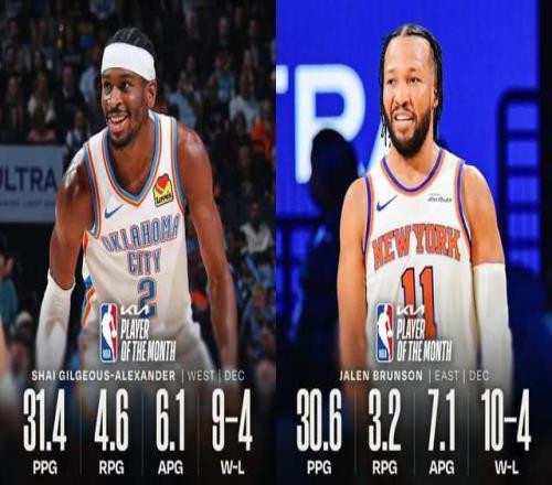 攤開數(shù)據(jù),亞歷山大12月場均31.4分4.6籃板6.1助攻,出色表現(xiàn)下,雷霆打出9勝4負,依舊是穩(wěn)定運轉(zhuǎn)的衛(wèi)冕機器。而布倫森也同樣不差,場均30.6分7.1助攻,帶隊尼克斯10勝4負。