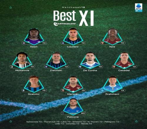 北京時(shí)間1月5日,意甲官方公布了聯(lián)賽第18輪的最佳陣容,勞塔羅、澤林斯基、麥肯尼入選。